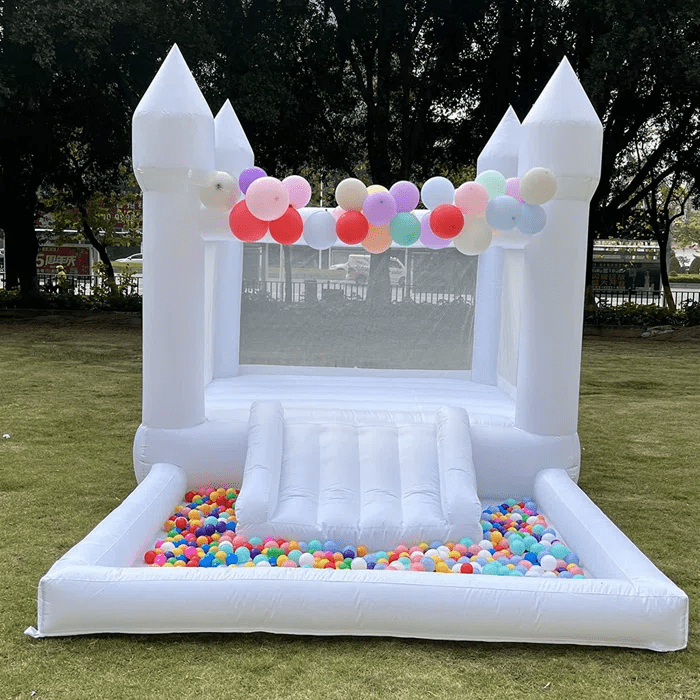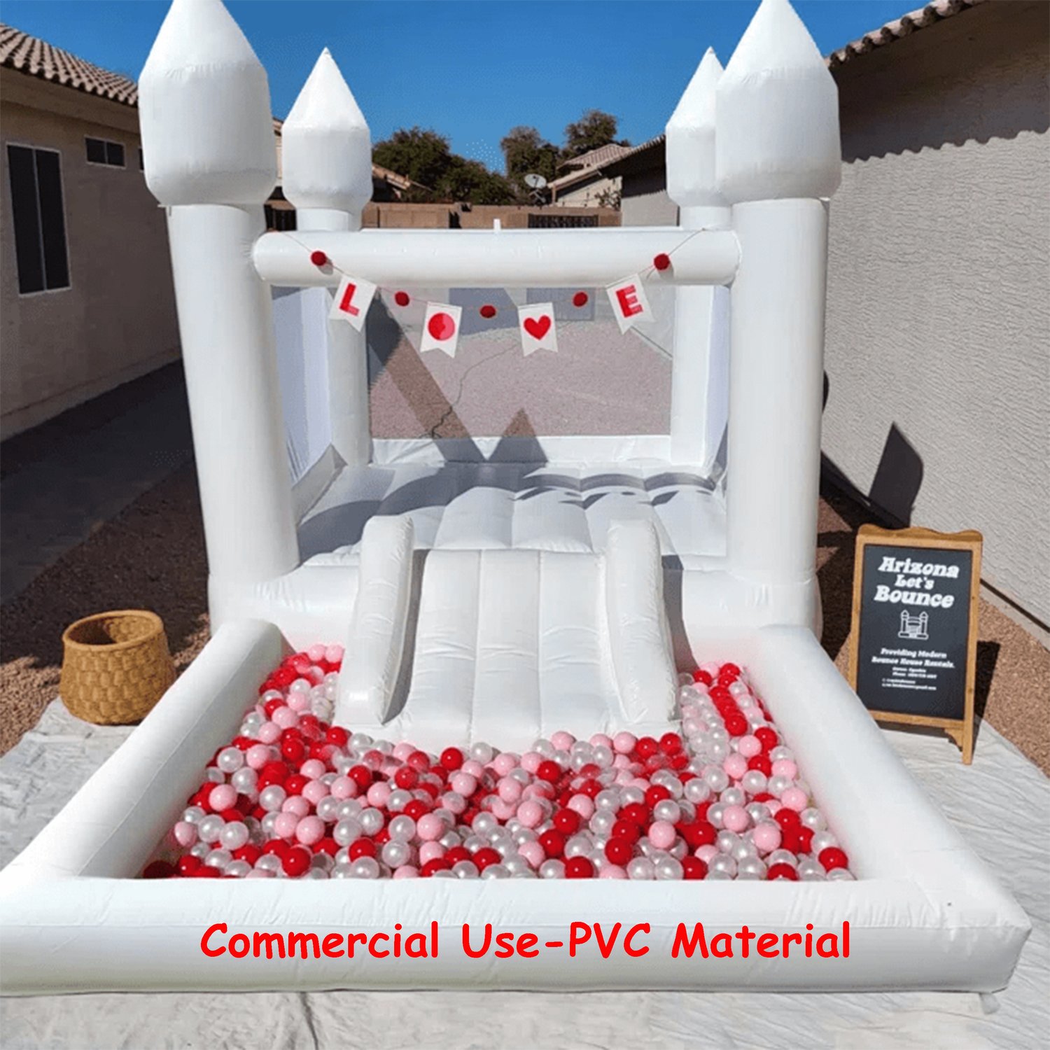 13' X 8' X 8' PVC White Bounce House With Slide & Ball Pit & Air Blower - US Stock