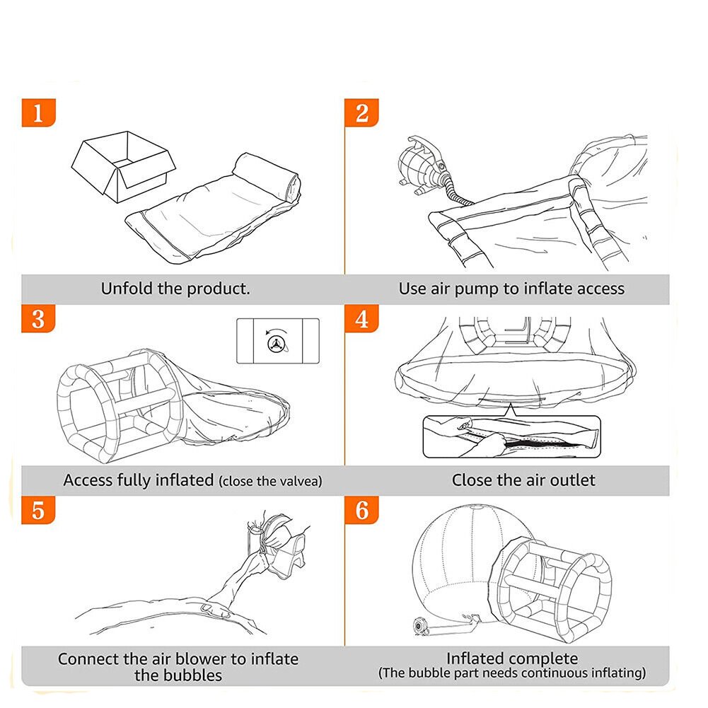 - â¤ă Large Capacityă- Dimension of our bubble balloon area is about 7ft Heigh, 8ft Length. For 3-5 children or 2-3 adults can enjoy at a time.