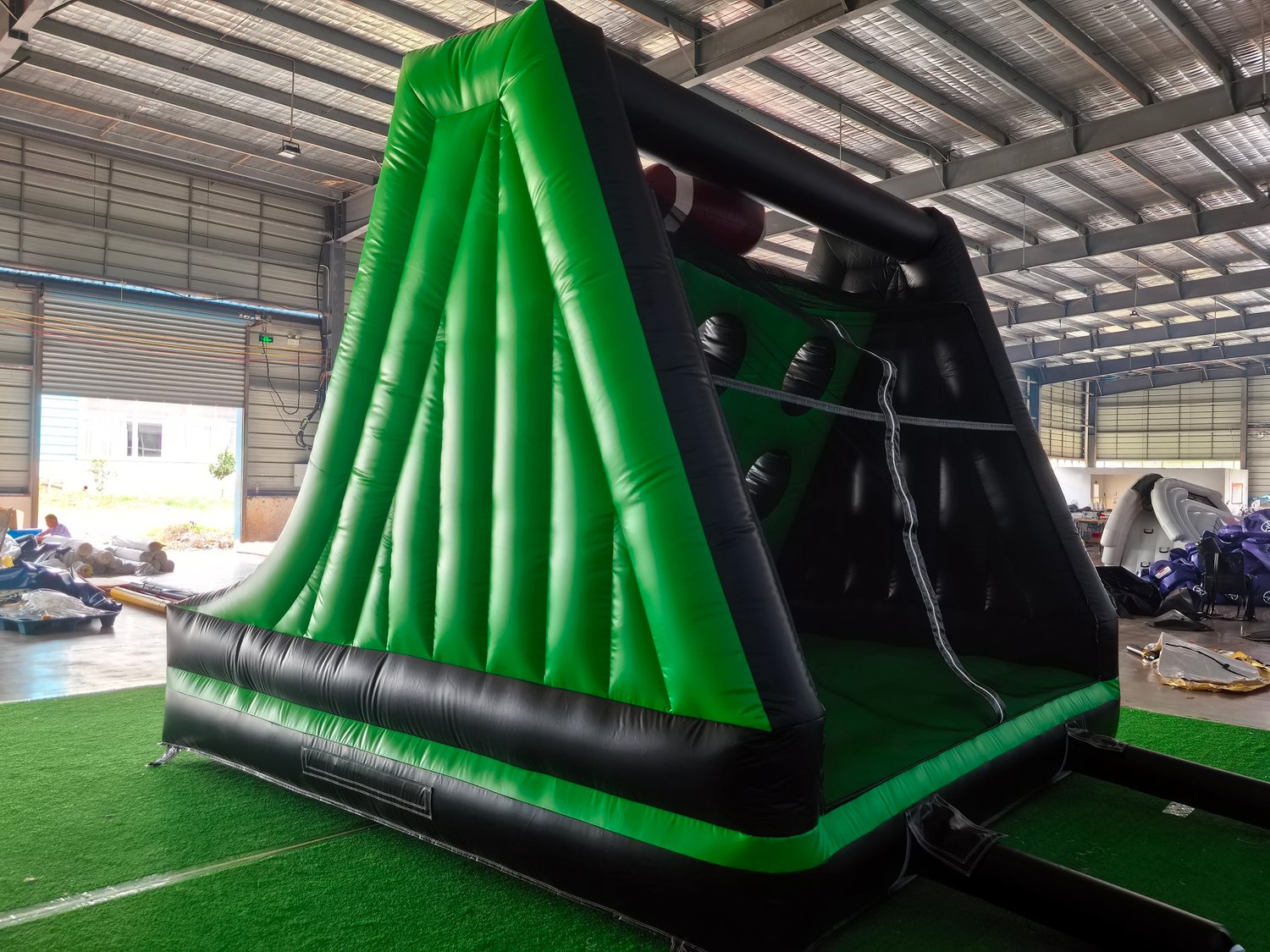 Score a touchdown for fun with our 14x14x12FT Inflatable Football Target Game! This massive, professionally designed toss game features a giant realistic football on top and multiple oversized scoring holes that create the perfect challenge for players of all skill levels. Made from heavy-duty 0.55mm commercial PVC, this durable game can handle intense play at camps, carnivals, corporate events, and backyard parties.
