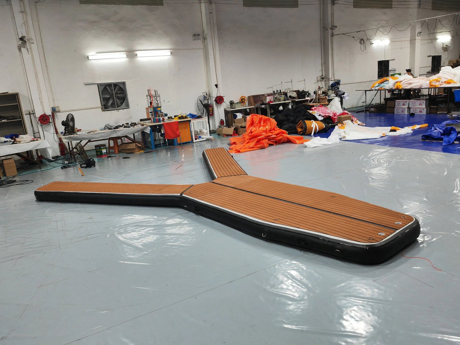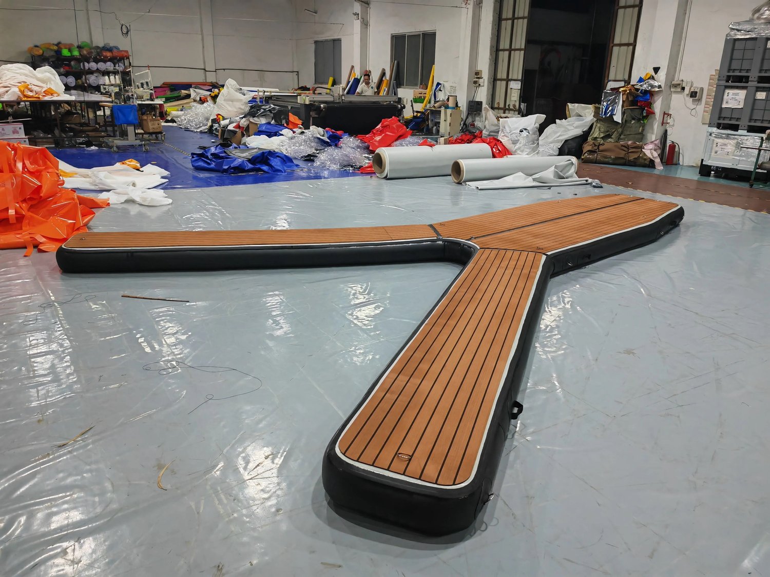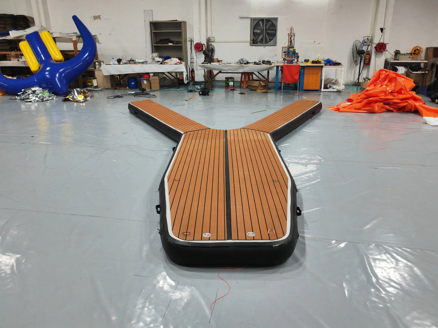 Inflatable Y pontoon is a portable platform, sturdy, and heavy-duty floating platform that can be anchored from shore to water –allowing passengers to walk on and off your boat easily. It takes approximately 3-4mins to inflate and assemble. Used by boat owners who want fast and easy access to their boat, and also, for those who take pride and joy in keeping their boat clean from muddy and sandy feet!
