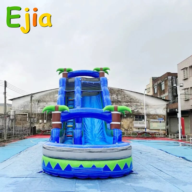 Hot Sale Palm Tree Waterslide Inflatable Adult Kids Bouncy Bounce House Ocean Wave Inflatable Water Slide