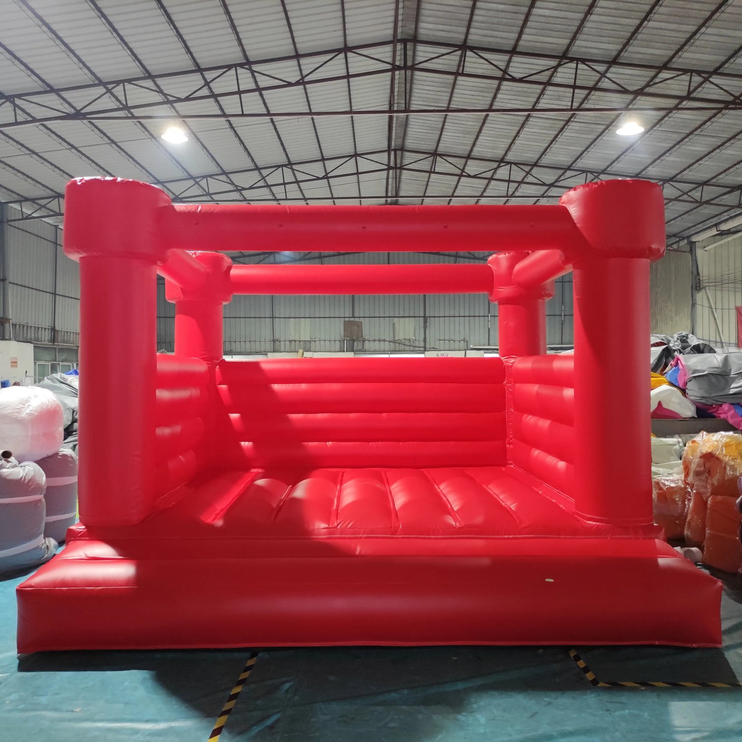 100% PVC tarpaulin, made of industrial strength ( heavy duty PVC) that is 5 times stronger than standard nylon oxford residential inflatables. Each unit has twin needles for maximum durability.