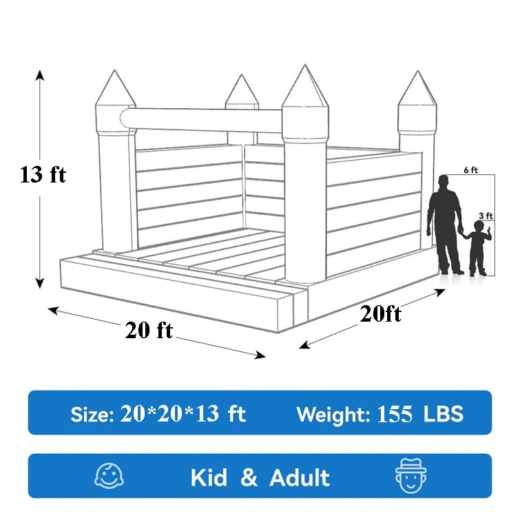 🎈 DIMENSIONS - White Arch bounce house-20'x20' FT (6x6 m)(L*W)