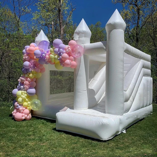 Fast Shipping 16.5'x13'ft (5x4m) Kids Party White Bounce House With Air Blower Jumping for inflatable Wedding jumper Bouncer Castle / jumping bed / Bouncy bounce House Bounce House Outdoor