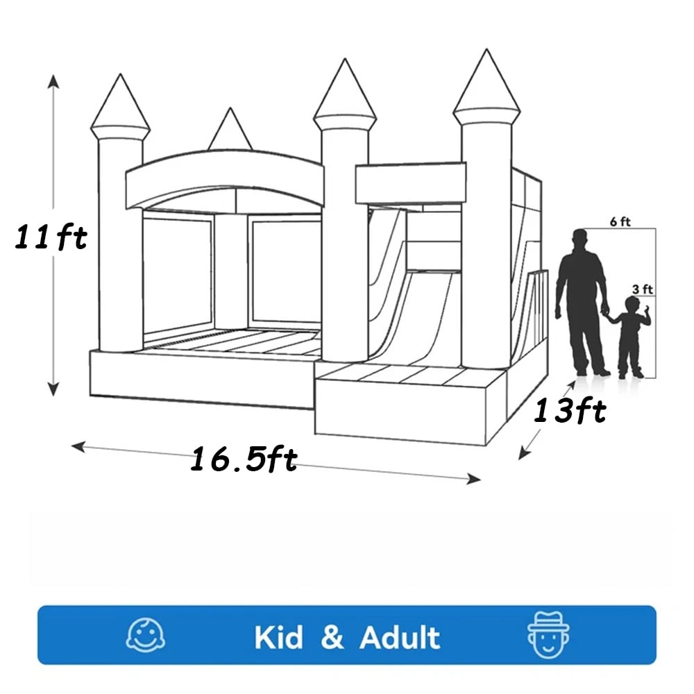 🎈 DIMENSIONS - White Arch bounce house-16.5'x13' FT (4x4m) (L*W)