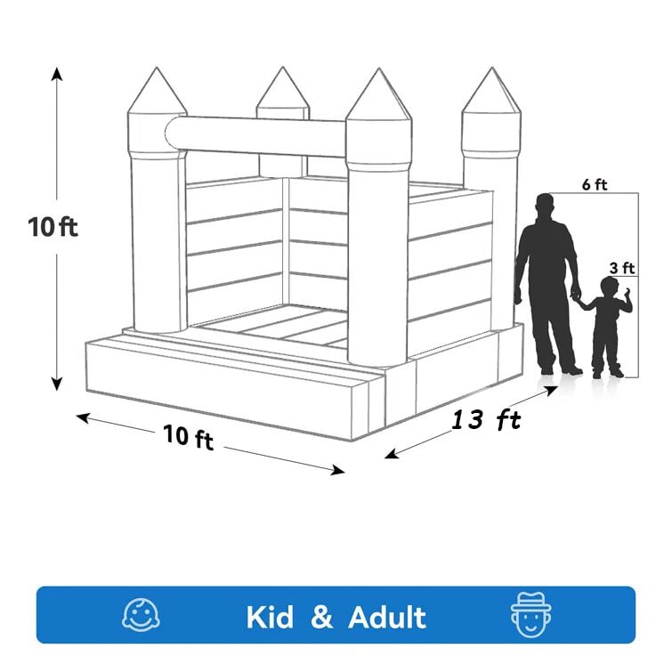 🎈 DIMENSIONS - White Arch bounce house-13'x10'x10 Ft / (4x3x3 m) (L*W*H)